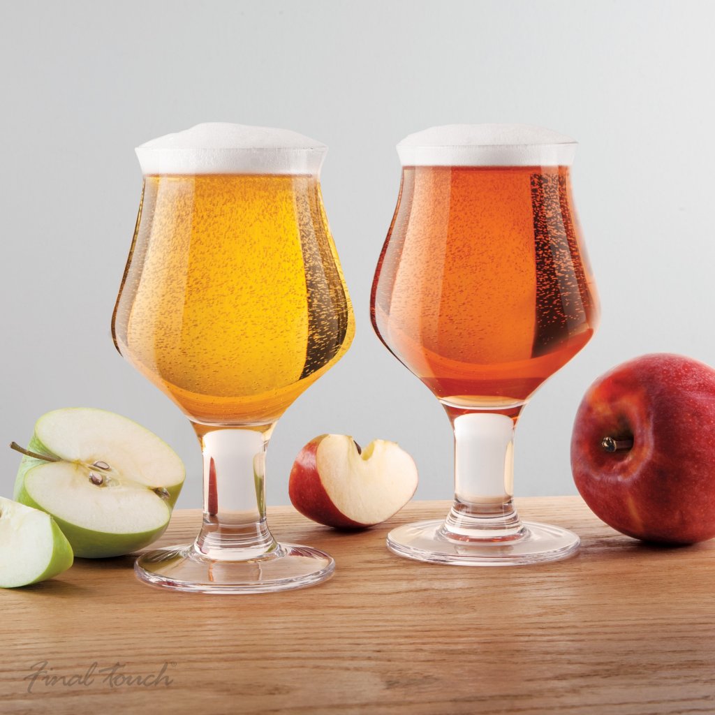 Final Touch Apfelweinglas 47,5 cl 2er-Pack mit hochwertigen Gläsern aus dem Hause British Final Touch hat ein einzigartiges Design, das darauf abgestimmt ist, das fruchtige und frische Aroma von Apfelwein hervorzuheben. Das Glas hat einen kräftigen Stiel für erhöhte Stabilität und der Kelch ist oben nach außen gerichtet, so dass sich das Getränk angenehm in der Mundhöhle verteilt. Ein stilvolles Glas, das sich perfekt für alle Arten von Apfelwein, Bier und anderen kohlensäurehaltigen Getränken eignet.
