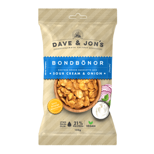 Ingredienser: Bondbönor, solrosolja, kryddblandning 4% (lök, salt, maltodextrin (majs, potatis), socker, jästextrakt, vitlök, kryddor, surhetsreglerande medel: