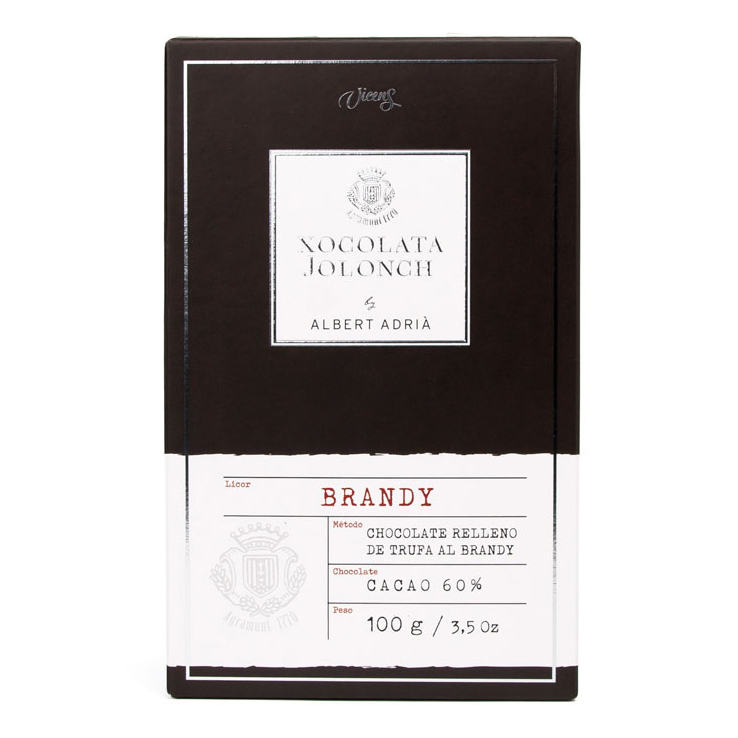 Jolonch by Albert Adrià – Dunkle Schokolade mit Cognac-/Brandy-Trüffel 100 Gramm, ein Geschmackserlebnis der Extraklasse. Entdecken Sie den ultimativen Schokoladengenuss mit Jolonch by Albert Adrià – dunkle Schokolade in ihrer verführerischsten Form. Zwischen zwei dünnen Schichten exklusiver Schokolade verbirgt sich ein zarter Trüffel mit dem Geschmack von Cognac/Brandy. Diese einzigartige Fusion gleicht die tiefen Töne der Schokolade und den reichen Charakter der Spirituose perfekt aus und schafft so ein Geschmackserlebnis, das sowohl intensiv als auch raffiniert ist.