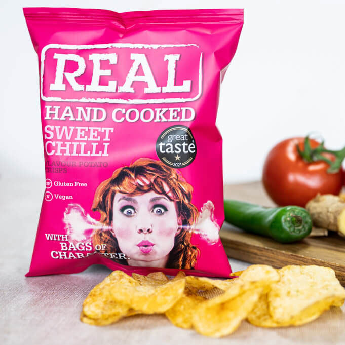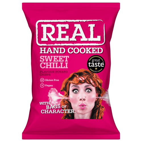 Real Chips – sweet chilli 35 Gramm mit einem kräftigen Geschmack von Sweet Chilli, der Ihre Geschmacksknospen süß und würzig zugleich macht.