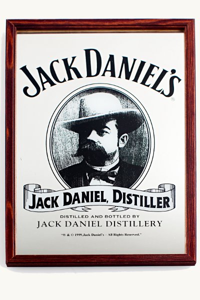 Pubspegel Jack Daniels. En snygg retrospegel med träram och Mr Daniels himself som motiv. Den mustaschen gick inte av för hackor!