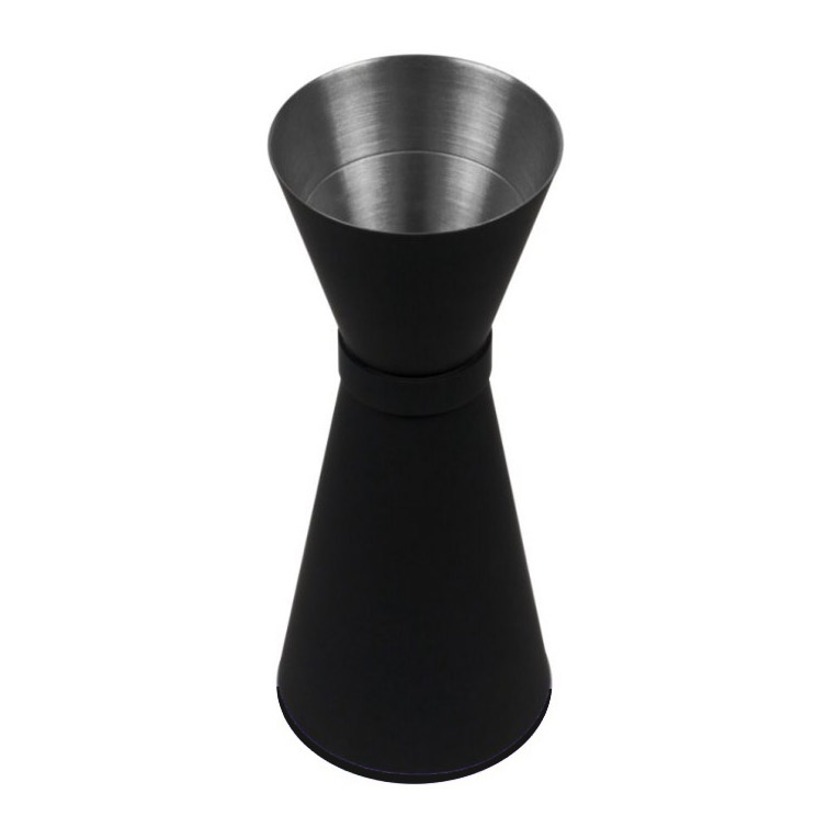 Jigger Japanischer Stil – Schwarz. Sehr stilvoller Jigger im klassischen japanischen Stil. Die Außenseite ist Mattschwarz, die Innenseite ist aus gebürstetem Edelstahl.Vol: 60 und 30 ml
