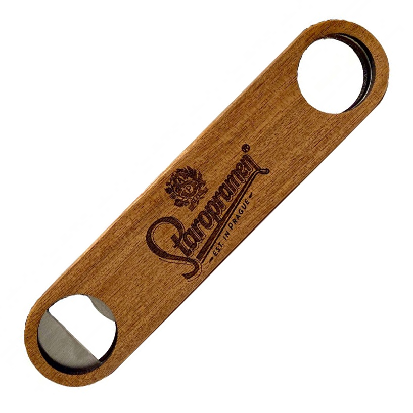 Staropramen Barblade Flaschenöffner aus Holz mit dem Staropramen-Logo auf der Seite. Ein wirklich edler und schöner Bieröffner, mit dem Sie Ihr Bier stilvoll öffnen können.Material: Holz und Metall