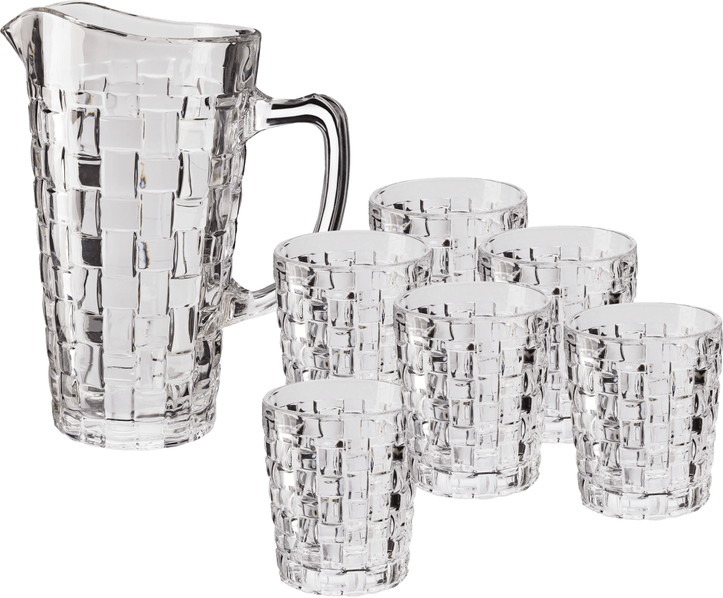 Förpackningen innehåller 1 st karaff och 6 st glas.
