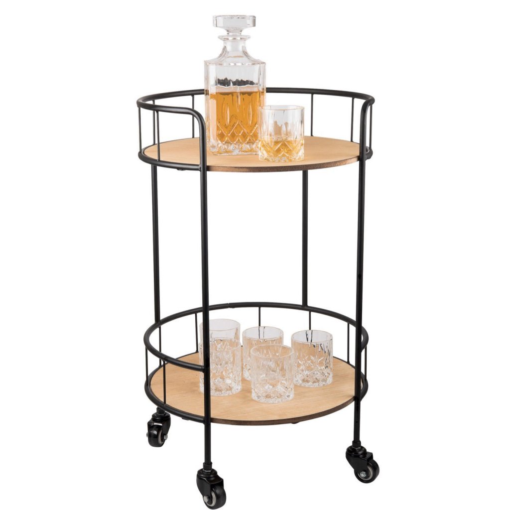 Utsökt serveringsvagn tillverkad i svart smide med träplattor från Dorre. Wilma serveringsvagn är idealisk som komplement till hemmabaren eller som serveringsvagn under cocktailpartyt. Vagnen har 2 st hyllor och vilar på 4 st styrbara gummidäck.