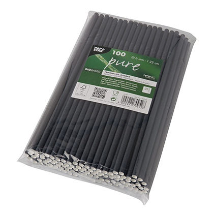 Papierstrohhalme 22 cm schwarz flexibel 100er-Pack festliche und umweltfreundliche Trinkhalme. Perfekt für Cocktails, Softdrinks und andere Erfrischungsgetränke.