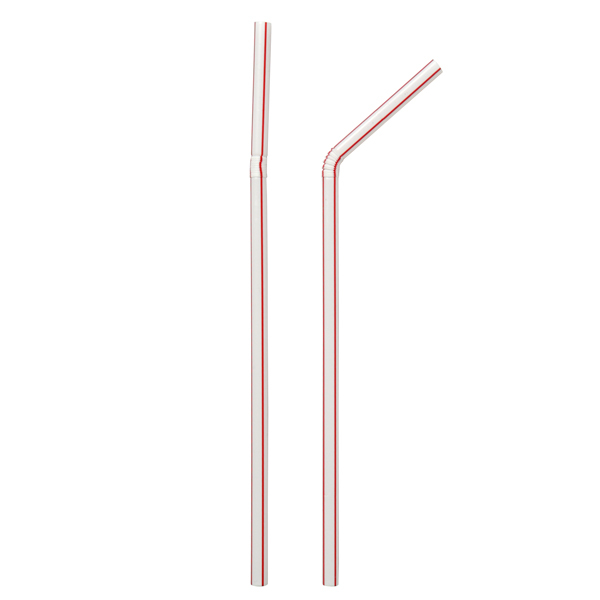 Snygga sugrör i vit plast med röda raka streck. Jumbo sugrör är böjbara upptill och har en något vidare omkrets. Perfekta till en milkshake, smoothie eller en fräsch drink.