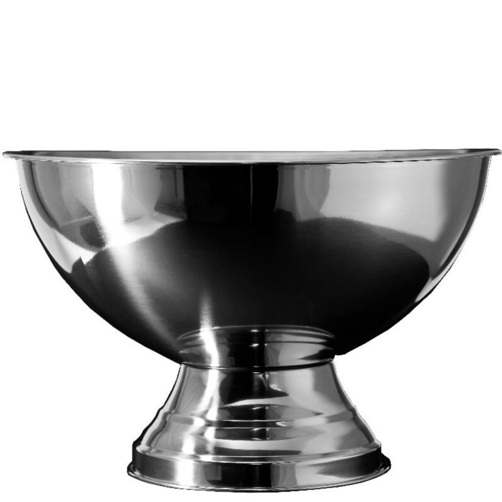 Weinkühler aus Edelstahl. Eleganter Weinkühler aus Edelstahl, der auf einem kleineren Fuß ruht. Hervorragend geeignet zum Kühlen von Champagner, Rosé- oder Weißwein, aber auch für Bierflaschen und Cocktailzubehör.