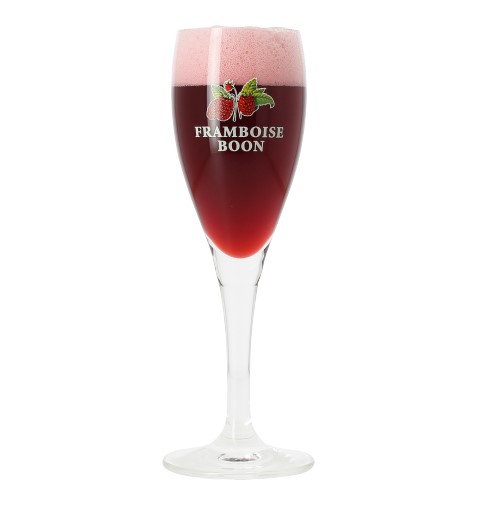12 cl Boon Framboise Bierglas. Die Brauerei Boon in der Gemeinde Lembeek in Belgien ist eine der klassischsten Brauereien für spontan vergorenes Bier. Framboise Boon wird aus einer Mischung von jungem und altem Lambic hergestellt, das in Eichenfässern gereift ist. Echte Himbeeren werden am Ende der Reifung hinzugefügt, mindestens 300 Gramm pro Liter Bier, wodurch ein frischer und fruchtiger Geschmack entsteht.