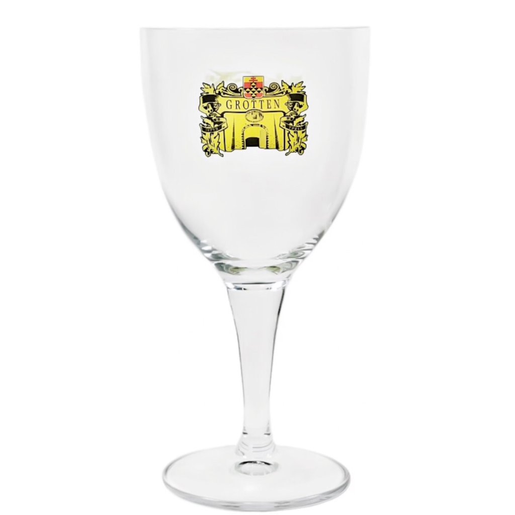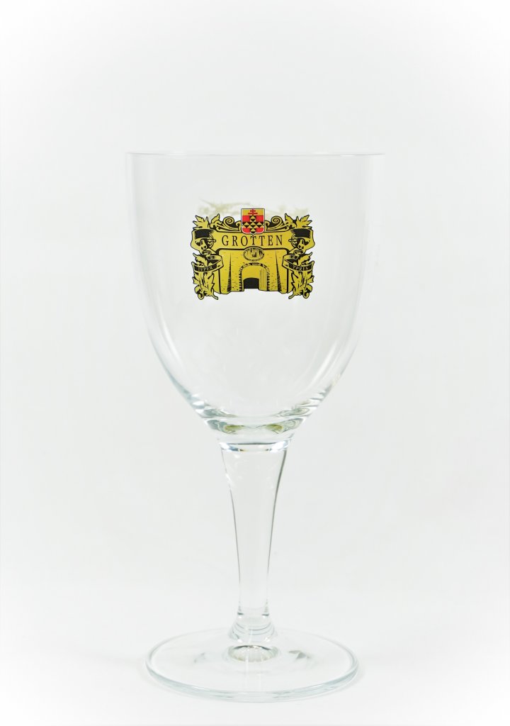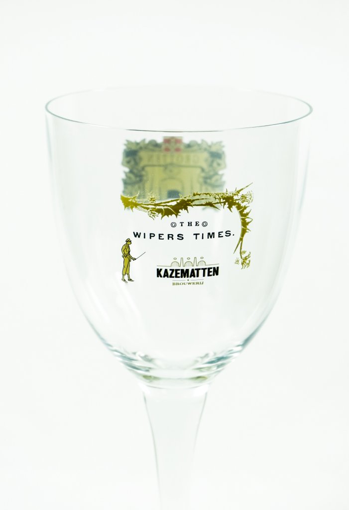 Kazematten Grotten Bierglas 33 cl. Grottenbier ist ein Bier, das ursprünglich aus der Brouwerij St. Gallen Bernardus stammt, aber das Rezept wurde vor kurzem an die Brauerei Kazematten gespendet. Grotten ist Teil der Wipers Times-Serie und ein einzigartiges Bier, da es in Höhlen gereift ist. Ein leichtes, aber cremig schmeckendes belgisches dunkles Bier. Das Bierglas ist becherförmig und steht auf einem breiten, nach unten schmaler zulaufendem Stiel und einem eleganten Fuß. Das Glas selbst ist wohlproportioniert und trägt vorne das Grotten-Logo. Auf der Rückseite steht The Wipers Times zusammen mit dem Namen der Brauerei.