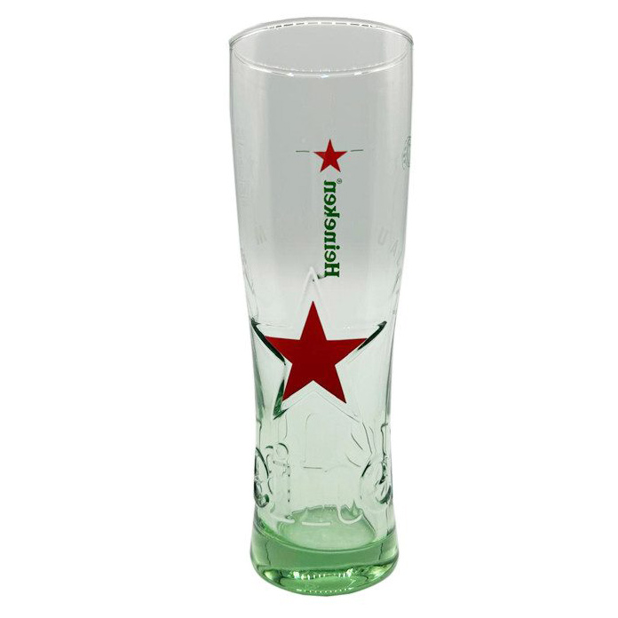 Heineken Bierglas 25 cl. Der niederländische Klassiker, den alle lieben! Genießen Sie Ihr Heineken in einem echten Heineken-Bierglas. Das neue Glasmodell trägt das Heineken-Logo in Farbe auf der Vorderseite und einen Stern in Relief unten auf der anderen Seite des Glases. Unten ist rundum das Glas die Aufschrift Heineken als Relief abgebildet. Der Glasboden ist mit Nukleationspunkten versehen, die die Blasenbildung in Ihrem Bier erleichtern.