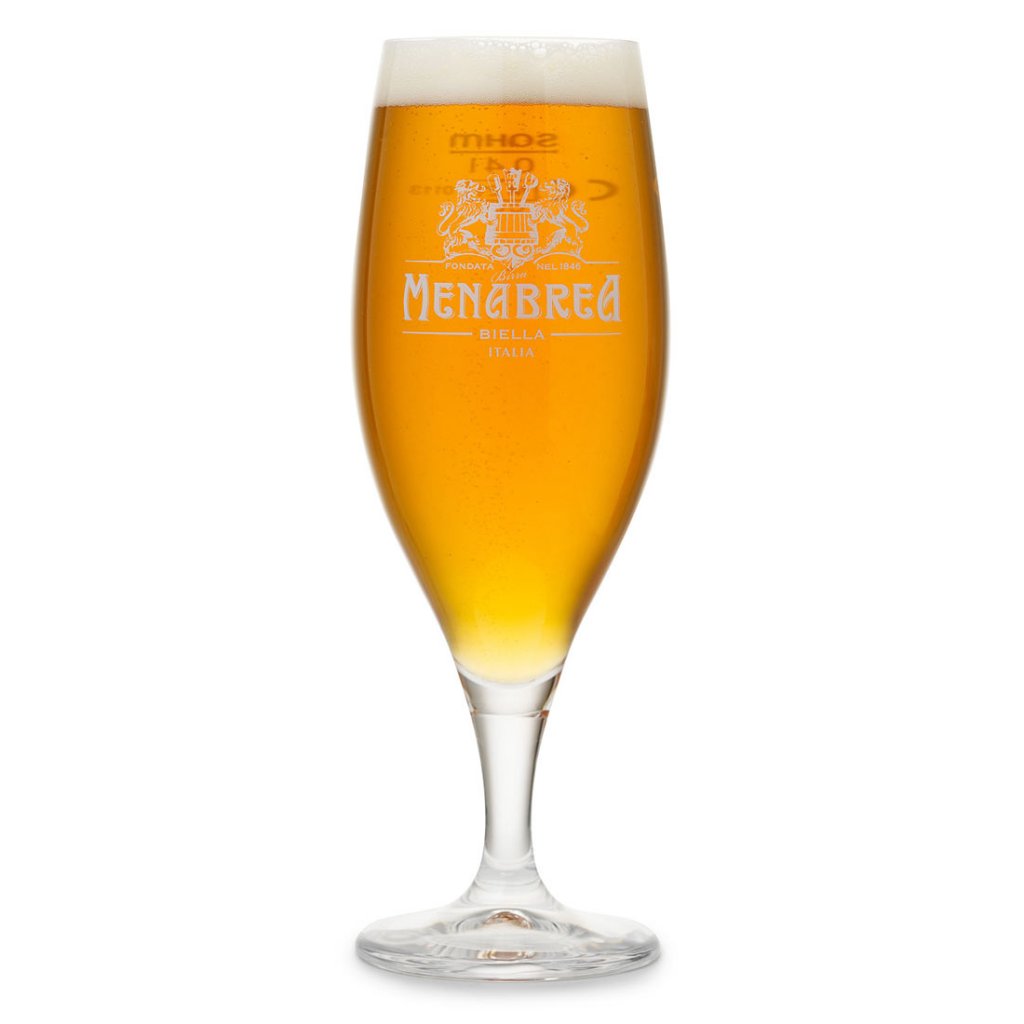Das Menabrea Bierglas auf Fuß 40 cl von G. Menabrea hat die Form eines klassischen Pilsglases. Gerade, saubere Linien und ein stabiler Fuß. Ideal, um ein kühles und erfrischendes Lagerbier zu genießen. Auf der Vorderseite des Bierglases ist Menabrea aufgedruckt.