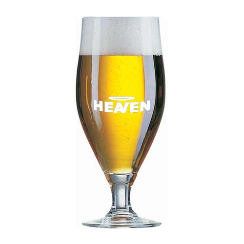 Das Glas ist auf jeder Seite mit HELL und HEAVEN bedruckt.
