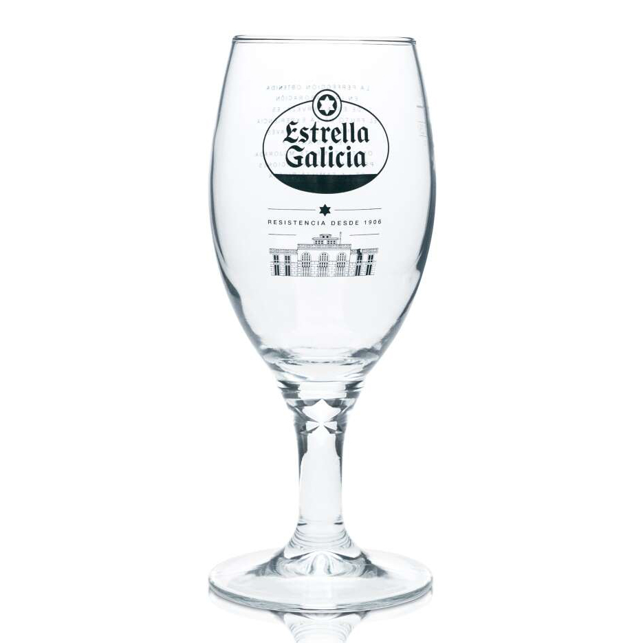 Estrella Galicias elegantes 30-cl-Bierglas für das Bier der Familienbrauerei Hijos de Rivera, deren stolze Ursprünge bis ins frühe 20. Jahrhundert zurückreichen. Jeder Schluck Estrella Galicia ist eine Hommage an Tradition und Handwerkskunst.