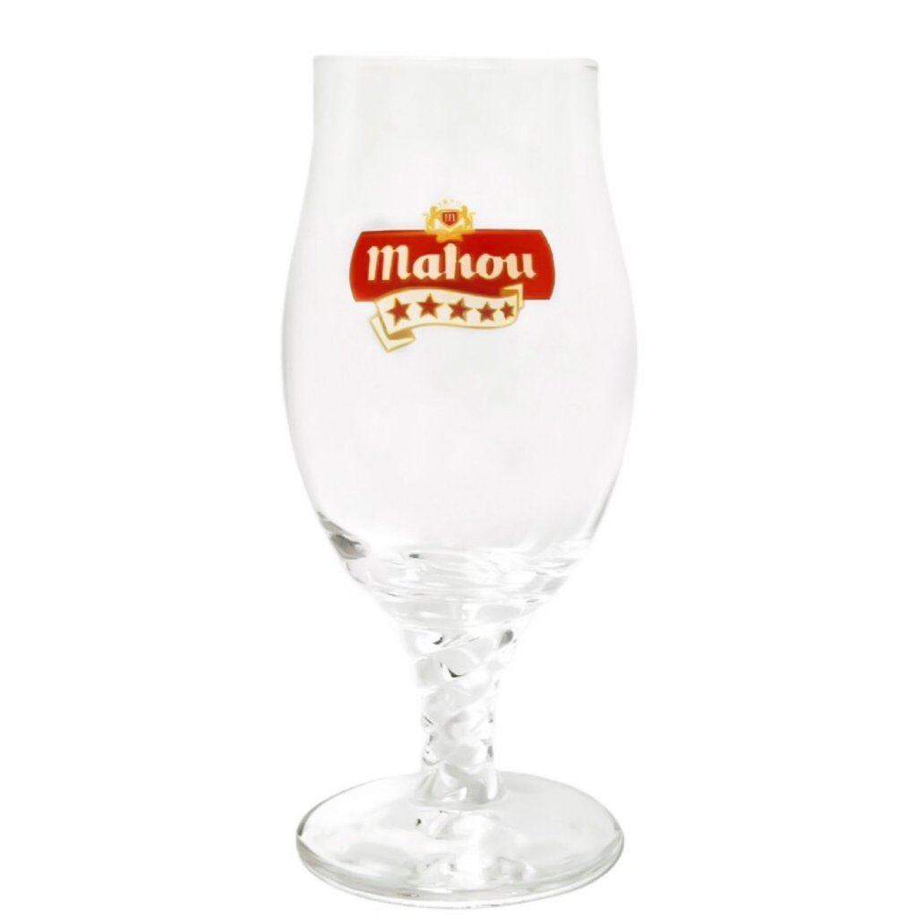Mahou ölglas 23 cl. Den spanska smaksensationen Mahou är det främsta valet bland Spaniens ölmärken. Just detta ölglas är pokalformat med en mycket vacker skruvad fot. Mahou-loggan finns tryckt på framsidan.
