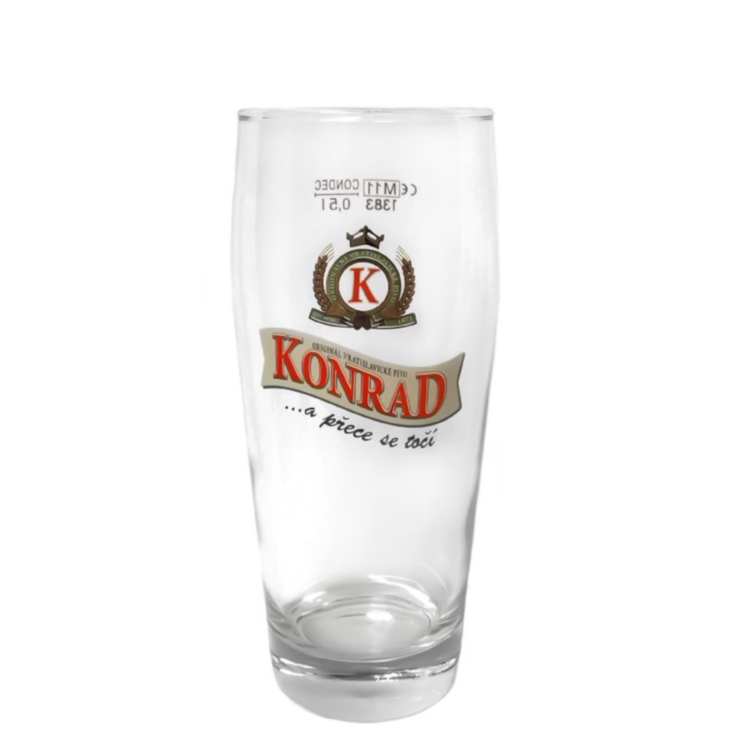 Konrad Bierglas 40 cl. Dieses tschechische Juwel wurde 1998 geschlossen, aber im Jahr 2000 wieder in Betrieb genommen, mit dem Ziel, nach traditionellen Methoden zu brauen. Dieses Bierglas ist leicht gewölbt und trägt auf der Vorderseite das Konrad-Logo.