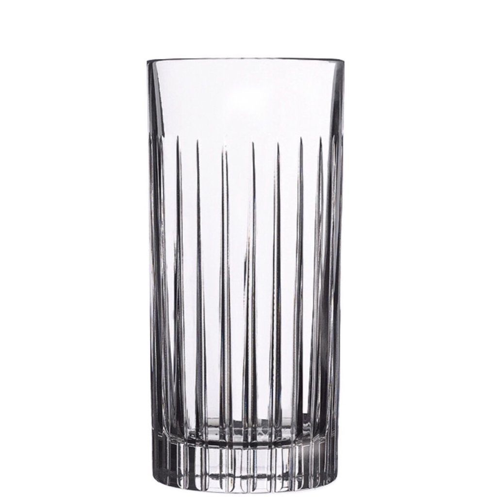 Timeless Trinkglas. Ein stilvolles Highballglas mit schönen klaren Linien. Das gerade Glas mit stabilem Boden ist mit horizontalen Schliffen versehen. Die Schliffe sind relativ schlicht, was dem Glas ein größeres Aussehen verleiht.