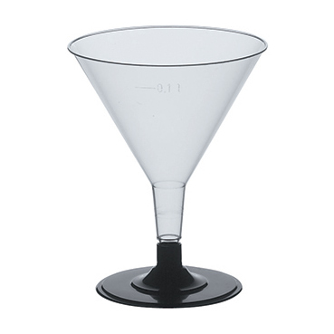 Cocktailglas plast 10 cl glasklar 20-pack som passar lika bra till drinken, till tapasen eller till kulglassen. Litet plastglas i form av ett martiniglas med svart fot.
