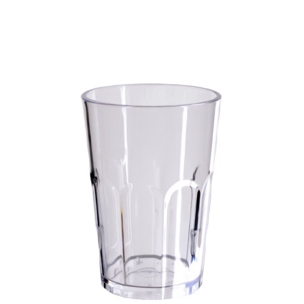Snyggt drinkglas i plast med en klassisk design. Detta drinkglas är tillverkat i plastmaterialet polykarbonat och passar perfekt som dricksglas, cocktailglas och allroundglas i mer krävande miljöer som nattklubbar, uteserveringar, i båten och på picknick. Polykarbonat är en vanlig transparent plast som tål maskindisk upp till och med 50 grader c.