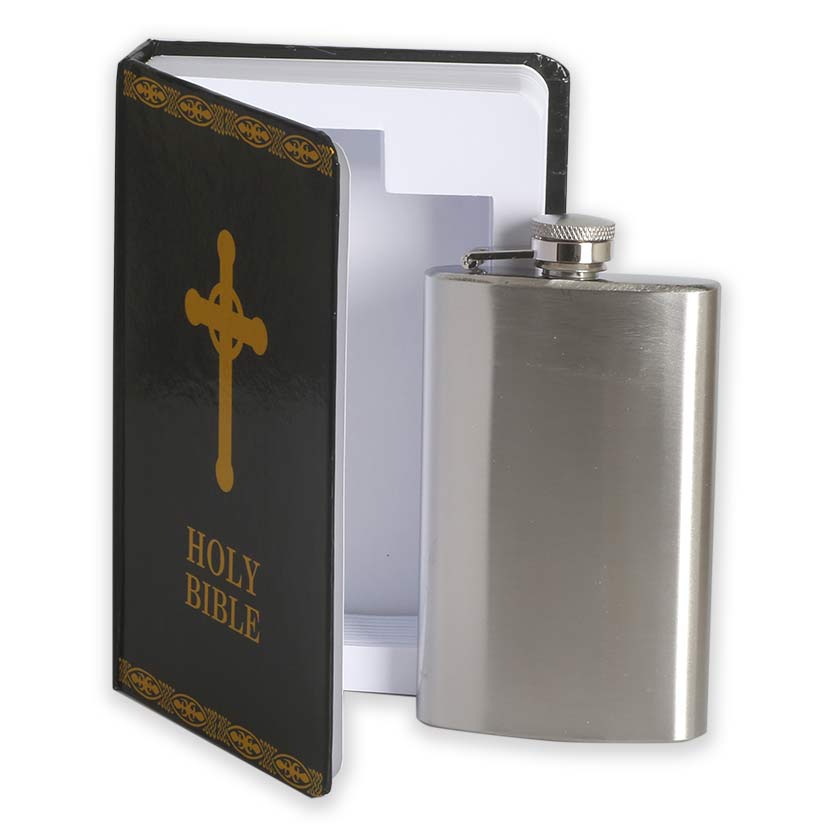 Holy Bible Flachmann 18 cl ist ein humorvoller und stilvoller Flachmann aus rostfreiem Stahl, verpackt wie eine klassische Bibel mit dem Text „Holy Bible“ auf dem Einband. Ein unerwartetes Detail, das garantiert ein Lächeln hervorruft – perfekt für alle, die Humor mit einer eleganten Note schätzen.