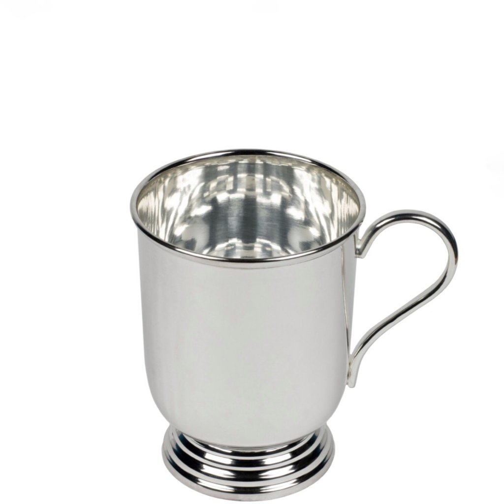 Der Julep-Becher in Silber ist ein exquisites Trinkglas mit einem Henkel an der Seite aus versilbertem Metall. Dieser Weihnachtsbecher hat ein anmutiges Design mit schlanken Formen und ruht auf einem dezenten Fuß. Das Design ist perfekt für einen eisgekühlten Mint Julep oder einen Moscow Mule, aber auch für andere Getränke und Cocktails geeignet.