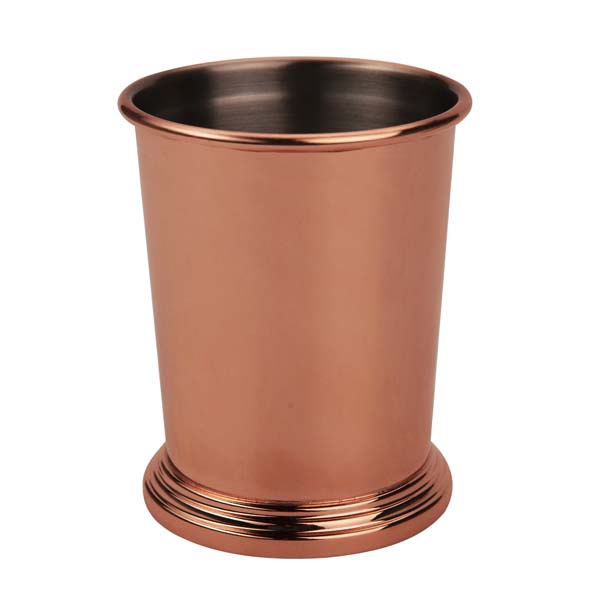 Julep Becher verkupfert 35 cl. Dieser elegante Kupferbecher mit der klassischen Form eignet sich zum Servieren von Julep-Cocktails. Die sich ausdehnende Form wird von einem feinen Fuß getragen. Natürlich passt dieses Cocktailglas nicht nur zu Moscow Mules, sondern auch zu anderen Getränken.