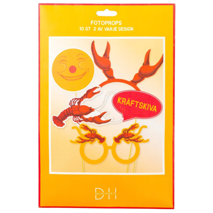 Jedes Requisit besteht aus Papier und ist auf einem Holzstab befestigt, der während des Fotografierens leicht hochgehalten werden kann. Das Design der einzelnen Requisiten wurde speziell für die Krebsparty entworfen, mit lustigen und festlichen Motiven!