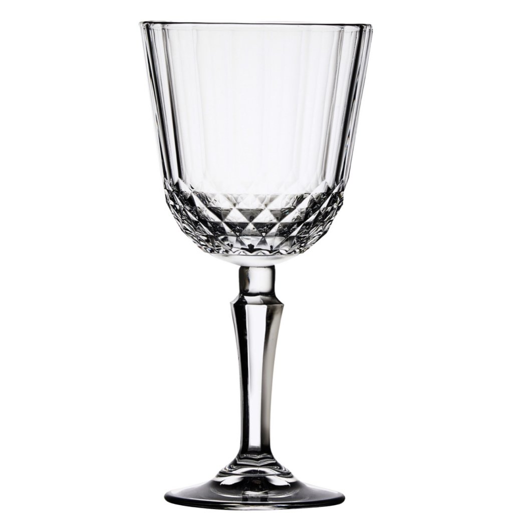 Diony vinglas 31 cl. Ett smidigt och elegant vinglas med en vacker slipning av romber nedtill i glaskroppen. Kupan är medelstor och passar utmärkt som allroundvinglas, främst till röda viner. Diony vinglas har en sexkantigt formad stjälk som påminner om de Speakeasyinspirerade glasen från det glada 1920-talet.