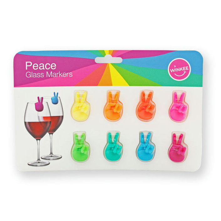 Glasmarker mit Friedenszeichen aus Silikon – die perfekte Lösung, um mit einem Hauch von Charme und Charakter den Überblick über Ihre Gläser und die Ihrer Gäste zu behalten. Diese farbenfrohen Marker sind so konzipiert, dass sie einfach am Rand des Glases angebracht werden können, sodass Sie auch bei geschäftigen Partys und Zusammenkünften leicht erkennen können, wem das Glas gehört.