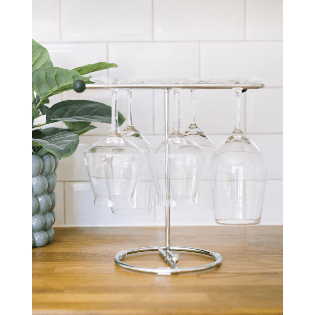 Tyra Trockenständer für Weingläser und Karaffen verchromt zum Lufttrocknen von bis zu 6 Gläsern oder einer oder mehreren Karaffen, je nach Größe. Geeignet für die Küche oder die Bar.Sehr preisgünstiger Geschirrständer für die meisten Gläser mit Stiel.Höhe: 30 cmBreite: 30 cm