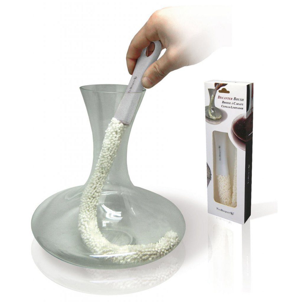 Weinkaraffenbürste Vin Bouquet – jetzt können Sie endlich Ihre Weinkaraffen nach Gebrauch reinigen, schnell und einfach. Auch für die Reinigung von Vasen usw. geeignet.