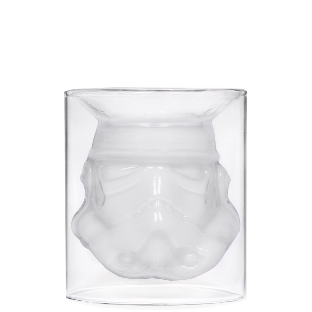 Storm Trooper tumbler. Ett whiskyglas utformat som en hjälm från en Stormtroopers utrustning. Själva hjälmen gjuten på insidan glaset vilket gör att alla konturer tydligt framträder när man fyller glaset med innehåll. Glaset är formad av originalgjutningen från den första Star Wars-filmen A New Hope, tillverkad av designern Andrew Ainsworth från Shepperton Design Studio. Så nära originalet man kan komma. Detta är ett måste för alla Star Wars-nördar!